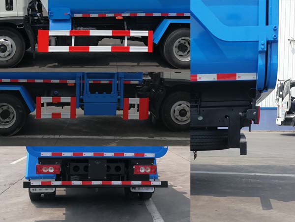 | 其他 | 该车主要通过专用装置将装载有生活垃圾的垃圾桶自行将垃圾装入,转运和倾卸的功用;选装车辆侧面及后面样式,选装旋转开启后门结构配置;随底盘选装驾驶室样式;仅选用3360mm轴距,发动机WP3NQ160E61对应油耗为17.5L/100km;侧后防护装置材料均为:Q235,侧后防护装置与车架连接方式均为:螺栓连接,后防护装置尺寸为:截面100×50mm,离地高度450mm;ABS控制方式为4S/4M,ABS型号为CM4XL-4S/4M,生产厂家为广州瑞立科密汽车电子股份有限公司. | ||