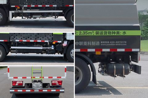 | 其他 | 该车采用底盘3360mm轴距,该车车身侧面装有护栏清洗装置,用于道路护栏清洗作业;罐体有效容积2.35立方米,罐体外形尺寸(长×宽×高)(mm):1544×2040×876;侧面防护装置的材料为铝合金,连接方式为螺栓连接;后防护装置的材质为Q345A,连接方式为螺栓连接;后部防护装置的断面尺寸为180×65mm,离地高度为435mm;随底盘装有ABS,ABS系统型号: VIE ABS-II,ABS系统生产厂家: 浙江万安科技股份有限公司.随底盘选装驾驶室前脸外观,选装箱体罩壳外观. | ||