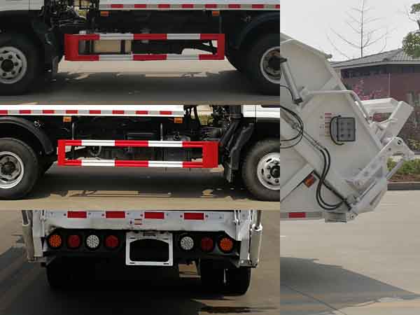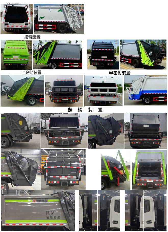 | 其他 | 1、该车主要专用装置由箱体、压缩系统组成,用于垃圾的收集与清运。该车可选装方形或弧形箱体,选装全密封盖装置,选装方形挡泥板,选装箱体前部爬梯,选装后部工作装置;选装箱体与驾驶室之间多路阀、液压油箱、液压管布置。。选装工作装置时,外形长(mm)/轴距(mm)/后伸(mm)/整备质量(kg)对应关系:①无上料装置:6630/3360/-/6490,7070/3800/-/6710;②摆臂装置:6790/3360/160/6490,7230/3800/160/6990;③全密封斗装置:6830/3360/200/6490,7270/3800/200/6990;④翻桶装置,半密封斗装置:7030/3360/400/6490,7470/3800/400/6990。2、侧防护采用冷弯型钢/Q235,螺栓连接;后防护由专用装置替代,下边缘离地高500mm。3、ABS系统控制器型号/生产企业:ABS-E/威伯科汽车控制系统(中国)有限公司,ABS-VI·E/广州瑞立科密汽车电子股份有限公司。发动机F3.8NS6B156的油耗值为16.2L/100Km。 | ||